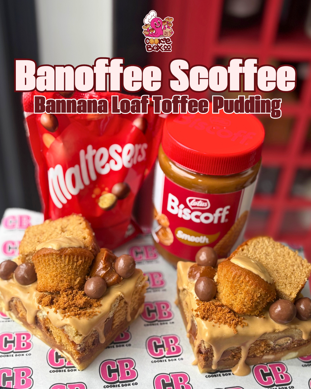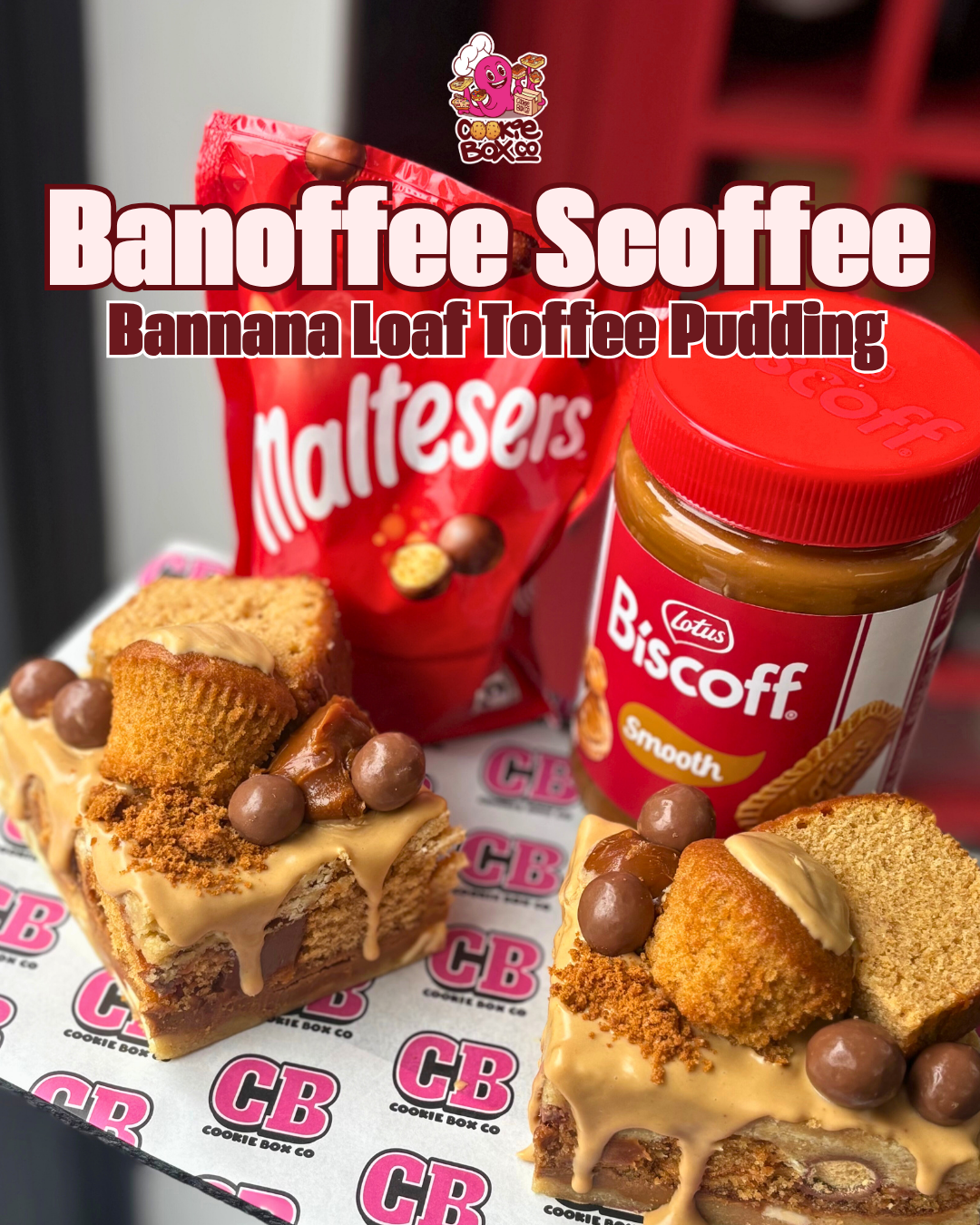 Banana loaf 🍞 meets sticky toffee pudding - thickened toffee and Biscoff with the naughty addition of Maltesers for added texture
