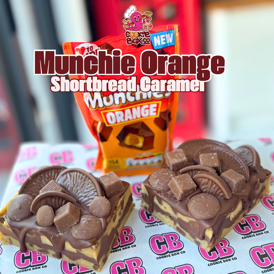 A milk chocolate base cookie dough stuffed with milk chocolate ganache and shortbread chunks topped with everything orange š orange buttons, Terrys Orange chunks and orange munchiesĀ