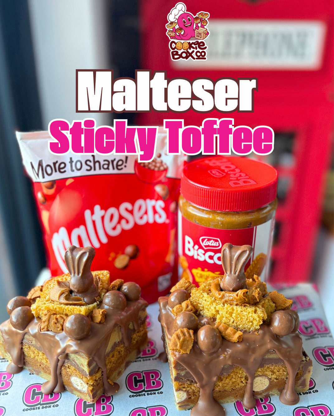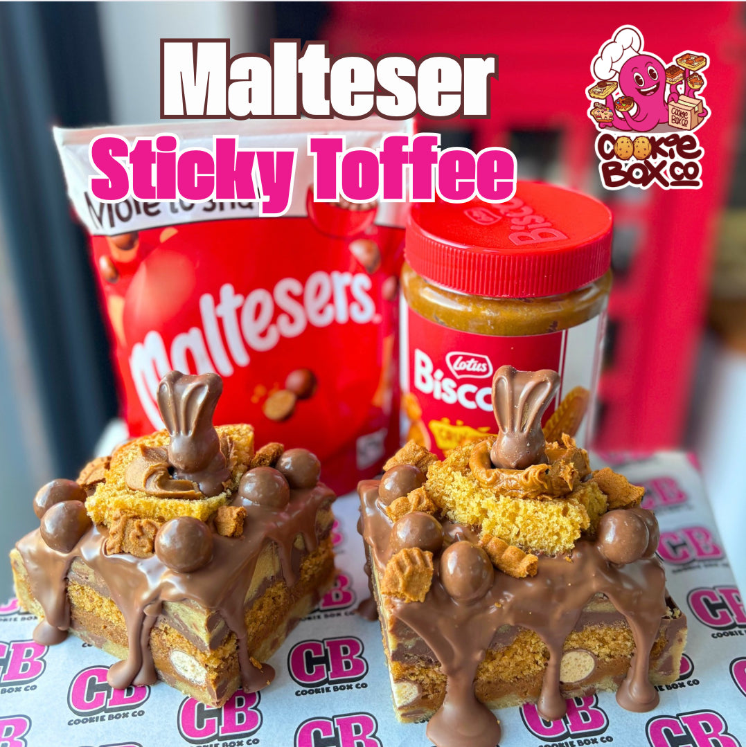 A layered decadent and naughty combination of cookie dough, followed by Biscoff crunchy spread, Maltesers, Sticky Toffee pudding and Dairy Milk ganache. This is the ultimate dessert - these cookies are loaded literally top to bottom! We don’t do small!