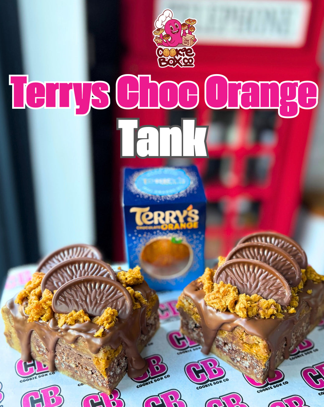 Terrys Orange meets the classic Cookie Box Tanks. Think caramel, flapjack and chunks of orange squares bars topped with Terrys Orange chunks this is the goat of orange cookies