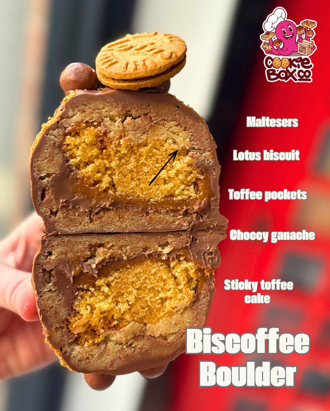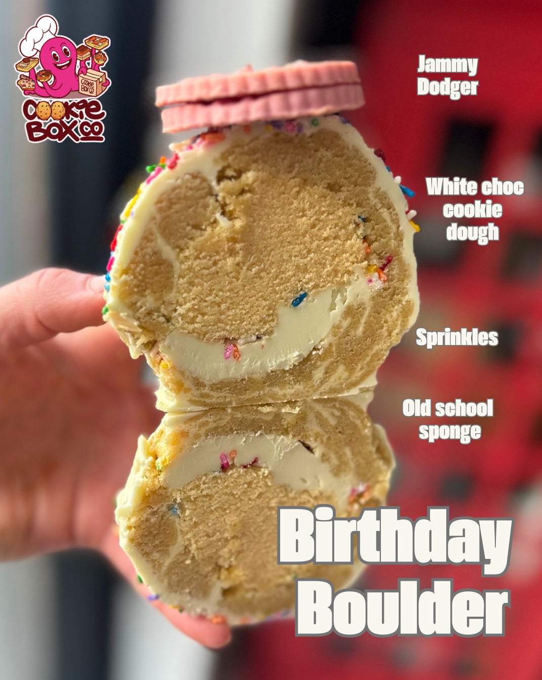 Choose your flavour these are what we are allying the BIG ASS BOULDERS …. Cookie dough enriched in a variety of toppings and flavours all with cake in the middle