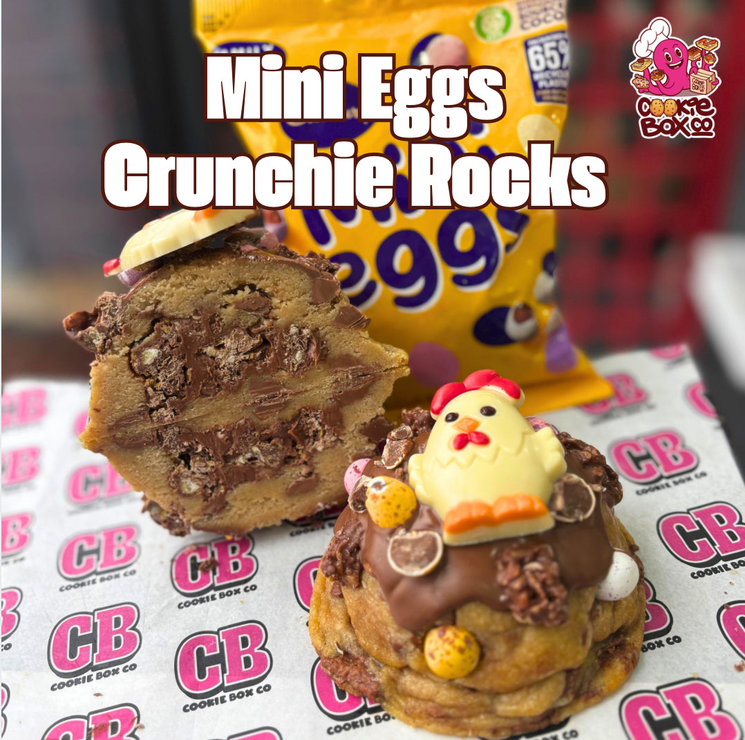 A milk chocolate cookie dough stuffed with dairy milk spread and Crunchie Rocks. The outside is covered in milk chocolate, mini eggs and crushed mini eggs and a chocolate chick